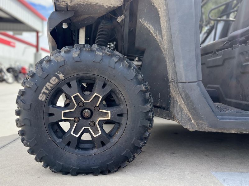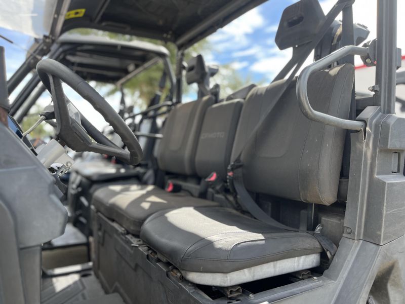 This one has the power to rival a team of Clydesdales. You get a roomy bench seat for three adults, a 1,000-lb. capacity gas-assisted tilting cargo box, a 10.5-gallon fuel tank, plus a high clearance suspension.