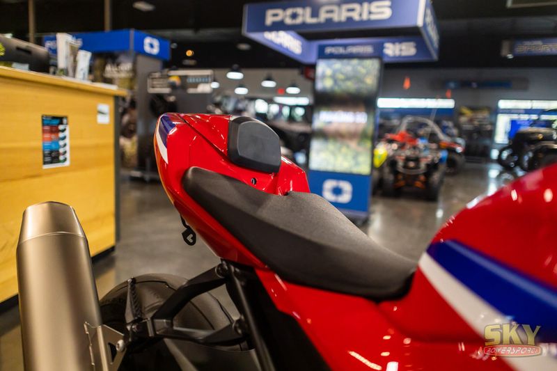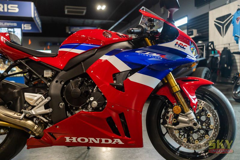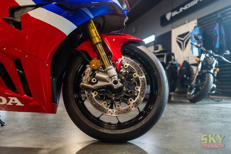 Crafted for those who strive for greatness, the CBR1000RR-R Fireblade SP brings MotoGP-proven technology to a street near you. And this year's new 2025 model has it all: more midrange power, sleeker aerodynamics, a responsive engine, Akrapovič titanium muffler, and Öhlins electronic suspension. So, hop on and rule the roads.