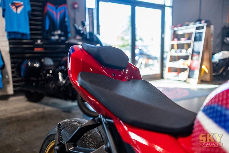 Crafted for those who strive for greatness, the CBR1000RR-R Fireblade SP brings MotoGP-proven technology to a street near you. And this year's new 2025 model has it all: more midrange power, sleeker aerodynamics, a responsive engine, Akrapovič titanium muffler, and Öhlins electronic suspension. So, hop on and rule the roads.
